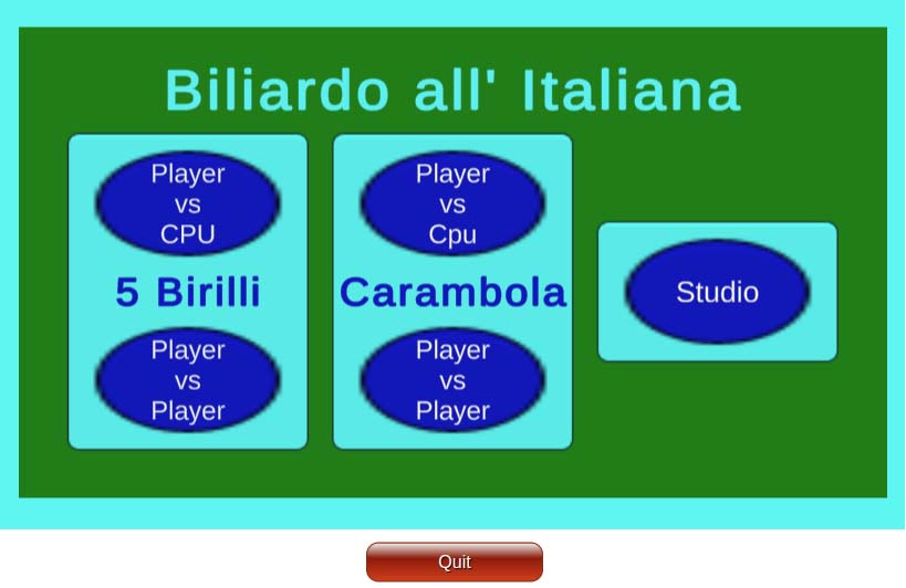 Nei sottomenù del menù Biliardo, trovate una succinta esposizione di utilizzo.